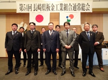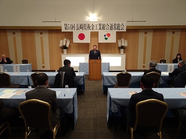 令和7年2月20日(木)HOTELシーサイド島原(島原市)にて「長崎県板金工業組合第54回通常総会」が開催されました。当日は、11時より旧三役会、12時からの総会前役員会に引続き15時から予定通り開会いたしました。