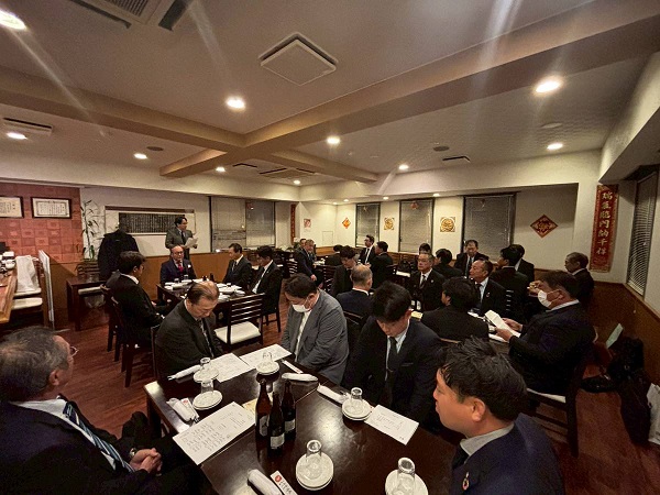 令和7年12月5日(金)中華屋 竹林(長崎市)に於いて、「県板役員会」と「商社との忘年会」を開催致しました。まず16時より三役会(5名出席)を開き、その後17時より理事9名・監事1名・青年部長・事務局1名、計12名(欠席者2名)で役員会を開催しました。