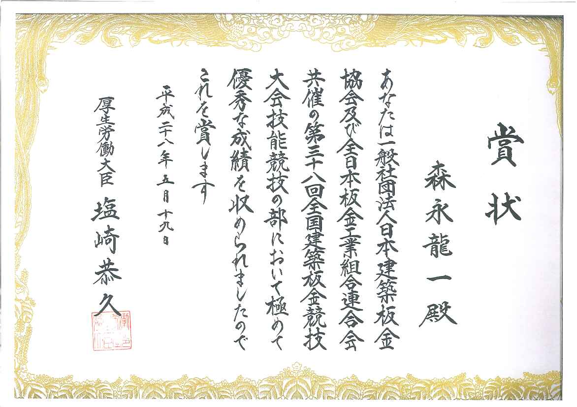 青年部 森永 龍一氏(森永板金店)が見事全国第1位を獲得しました!