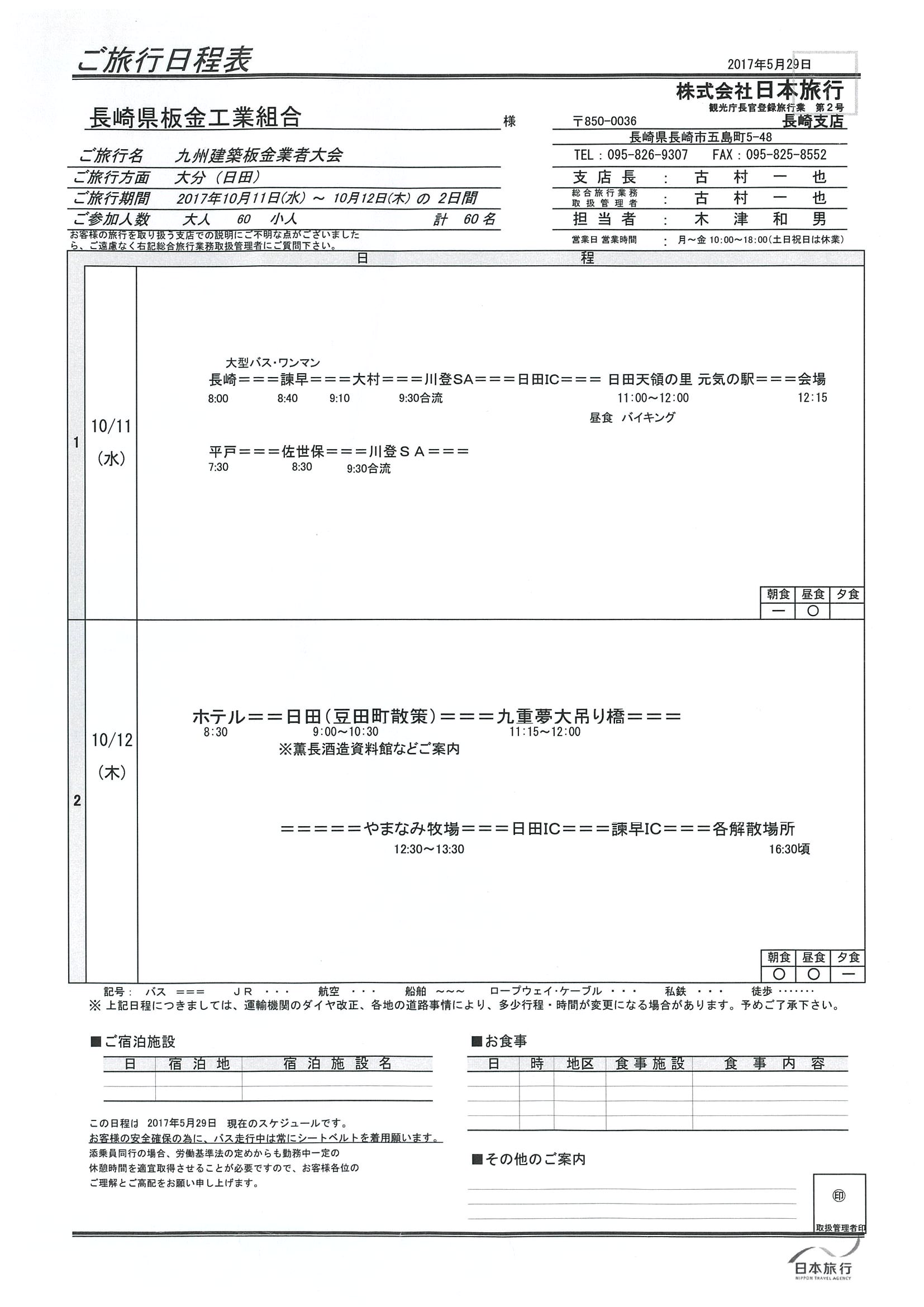 長崎県板は10月11日(水)~12日(木)の行程で参加案内をしております。