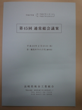 2月25日(木)は県板の第45回通常総会が開催されます。出席される組合員の方々は、『総会議案書』を忘れずにご持参下さい。
