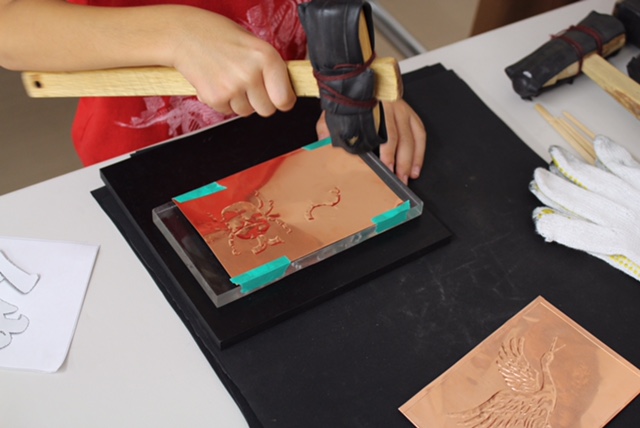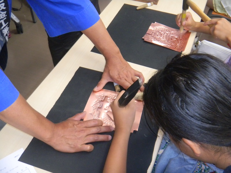 打ち、裏から押し出して作品を完成させていく体験をしてもらいました。